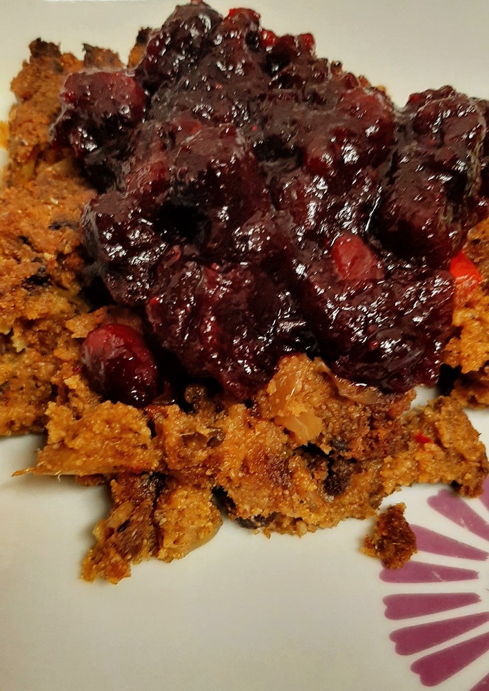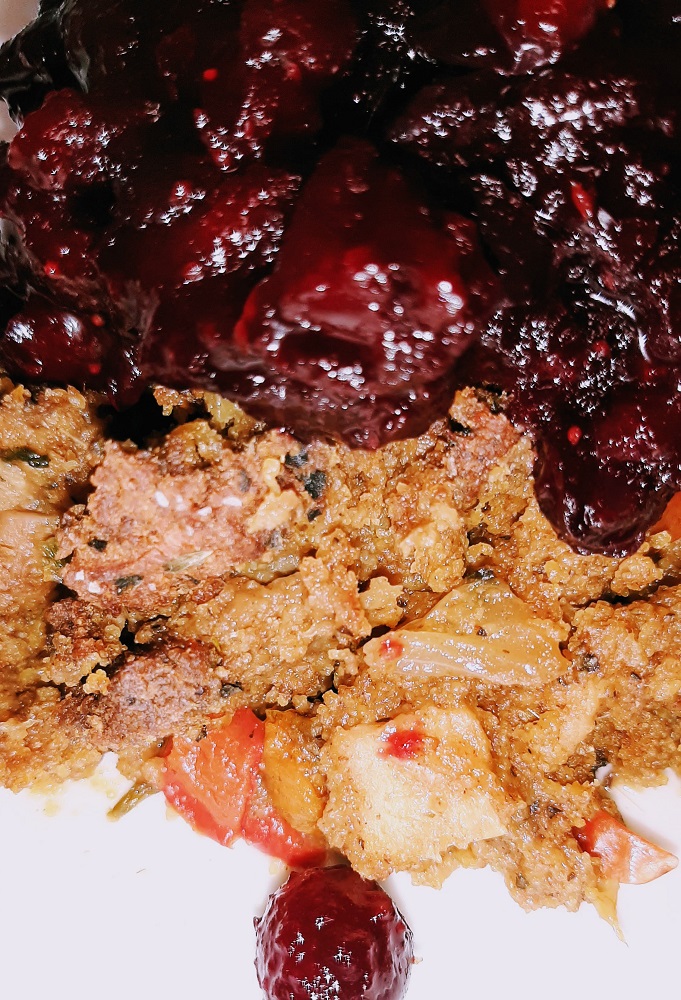 Vegan cornbread dressing, which you can’t have without cranberry sauce so let’s get down to it!