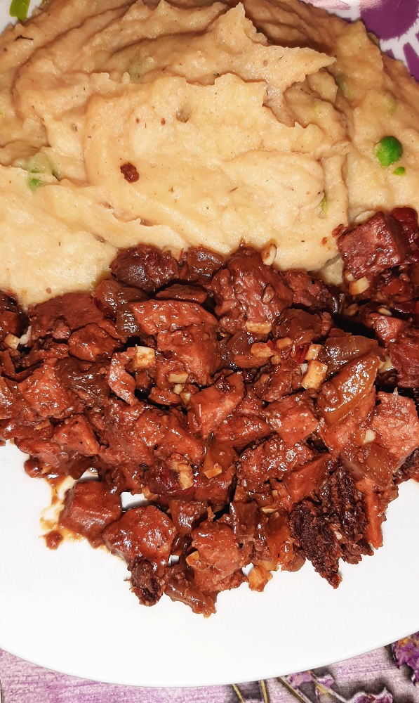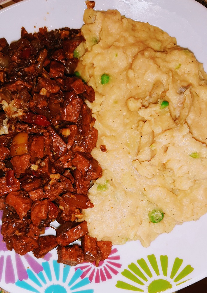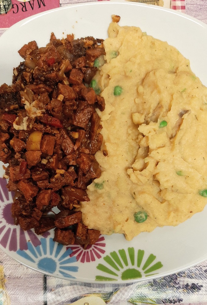 Of course this wasn’t even vegan corned beef but it was close enough and I paired it with vegan mashed potatoes and peas to give it that old school Americana recipe appeal.