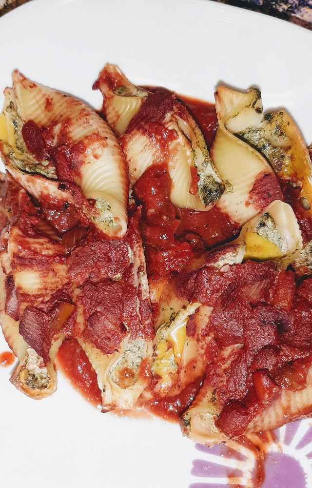 Until recently (well not so recently but these suckers aren’t easy to find in Europe) when I found myself watching some non-vegan cooking show and what did I see? Stuffed pasta shells. I looked everywhere, at all the grocery stores in town, even online and there was nothing.