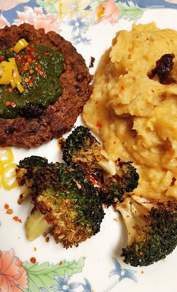 Serve the vegan chimichurri sauce on top of the vegan Beyond steak and if you’re in the mood, put it on top of everything on your plate. I didn’t add any to my delicious vegan mashed potatoes but add to whatever strikes your fancy.