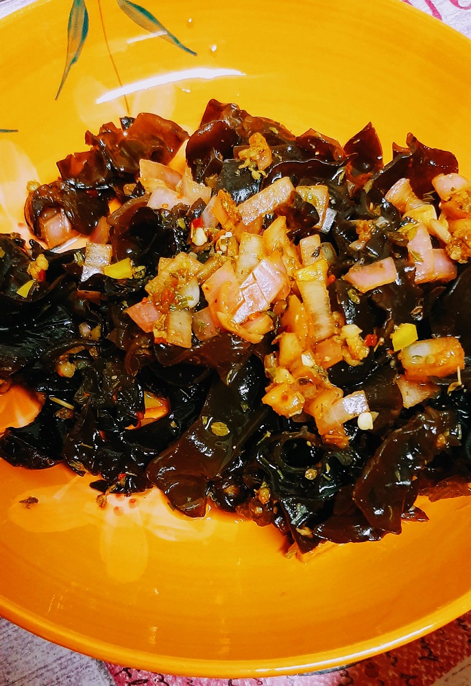 *Wood ear mushrooms with pickled shallots, garlic and chili peppers