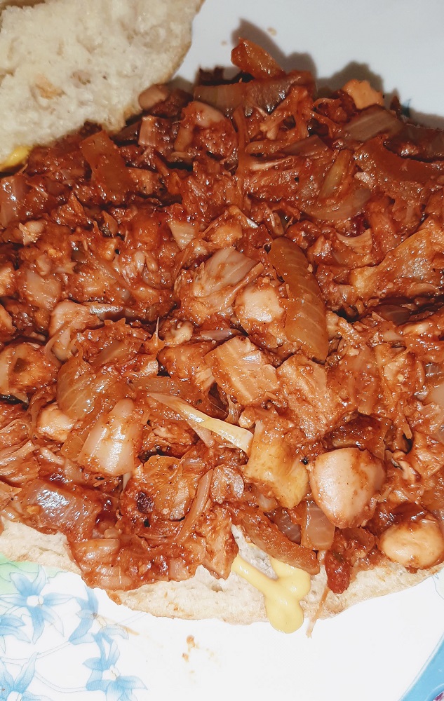 With a sandwich half the work is done by the bread so you just have to work in the sandwich filling, and today’s filling is spicy jackfruit.