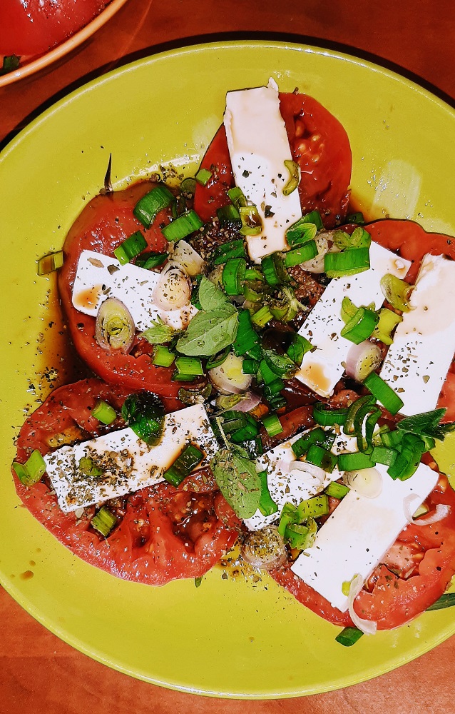 *Stack salad: tomato – vegan cheese – seasoning – fresh herbs.