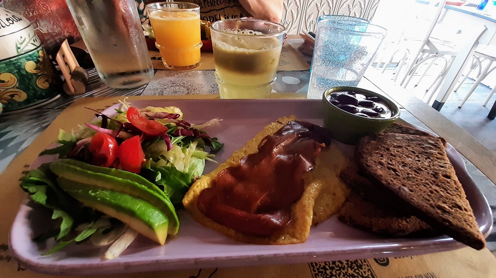 We started the day with a vegan brunch at Buddy Roma. I don’t know how you guys like to do things when you eat out with your significant other but we always split or share our dishes unless it’s one of the few things one of us doesn’t like. Our last vegan meal in Rome was no different. We ordered the American Vegan Brunch (of course) and the Vegan Brunch special. Each brunch special came with your choice of toast or pancakes, brownies or carrot cake, different juices (fresh orange, apple or pineapple), and your choice of coffee or water.