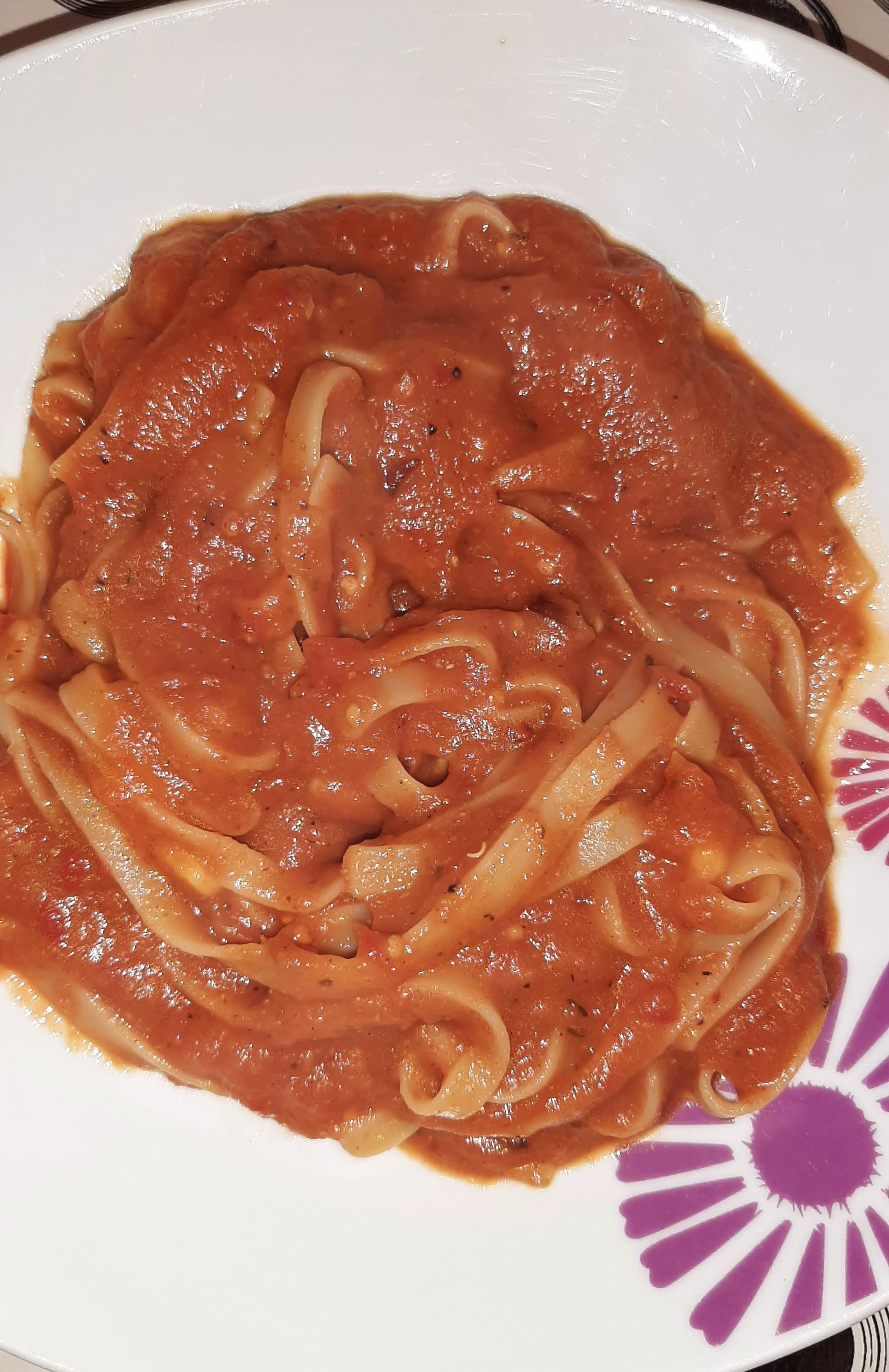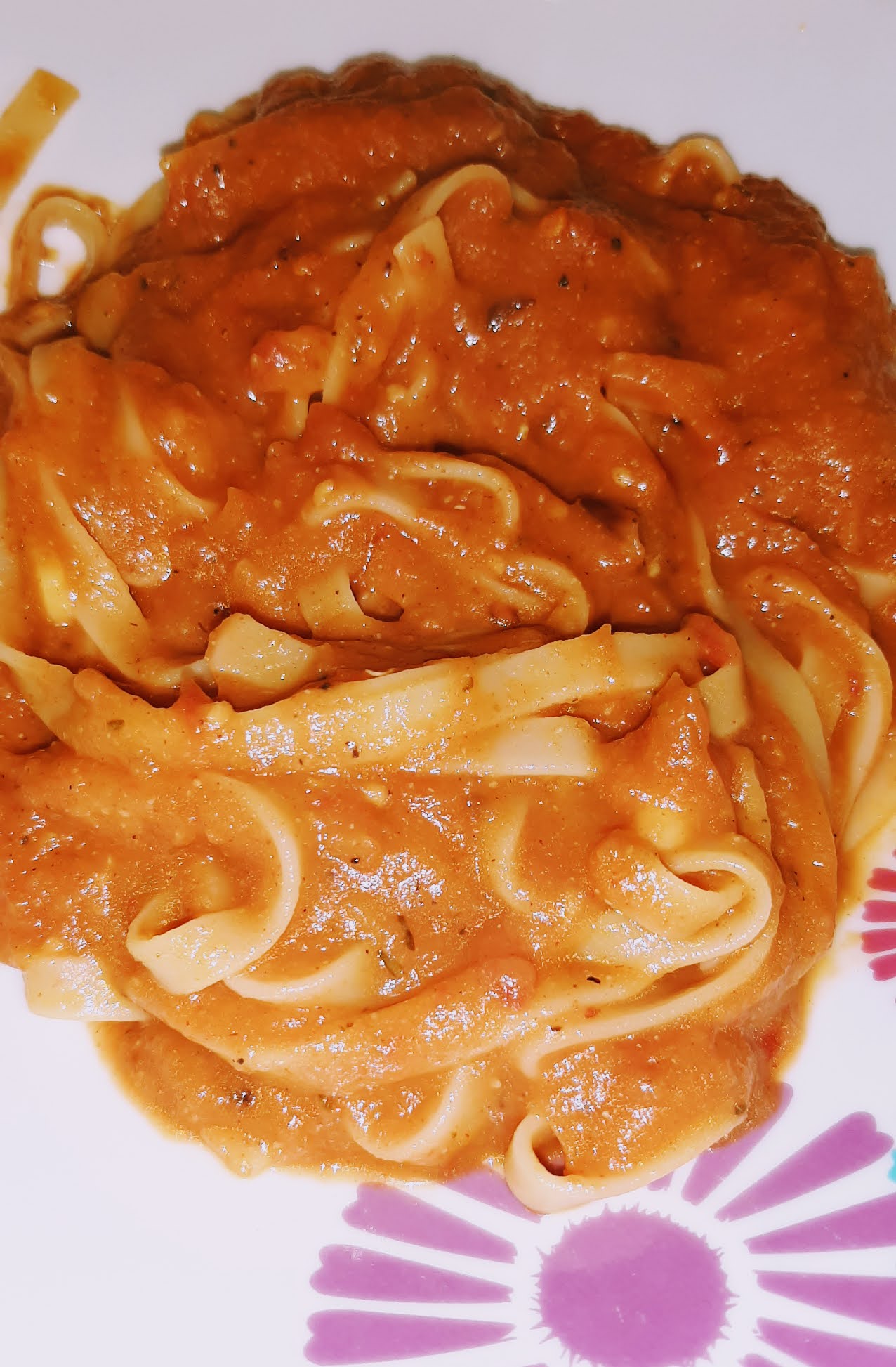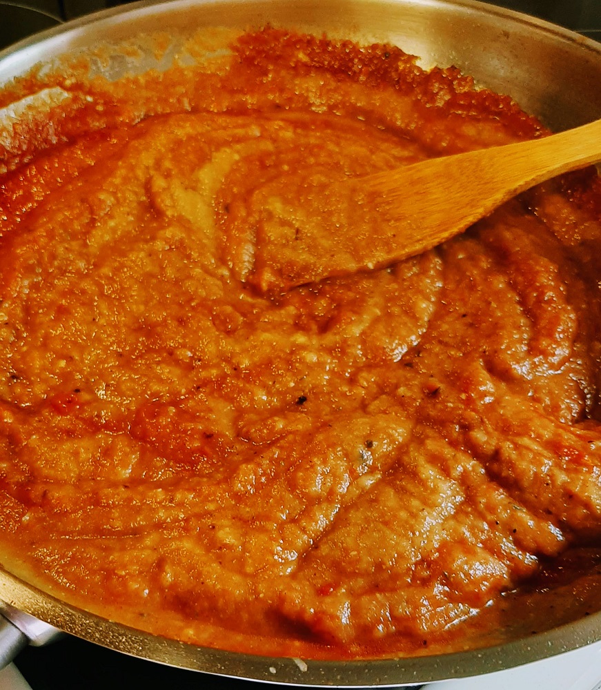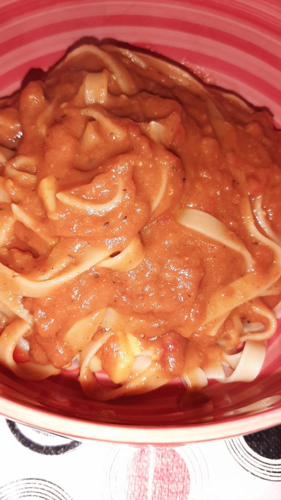 And that’s it. A quick and easy vegan pasta sauce that contains something other than tomatoes. Okay, it also contains tomatoes but that part is totally optional.