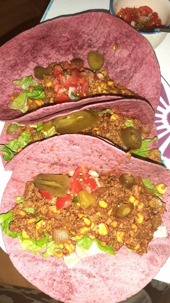 So here we are an an unintended vegan taco night with beetroot tortilla shells. Are you excited or wary? Because me? I was both.