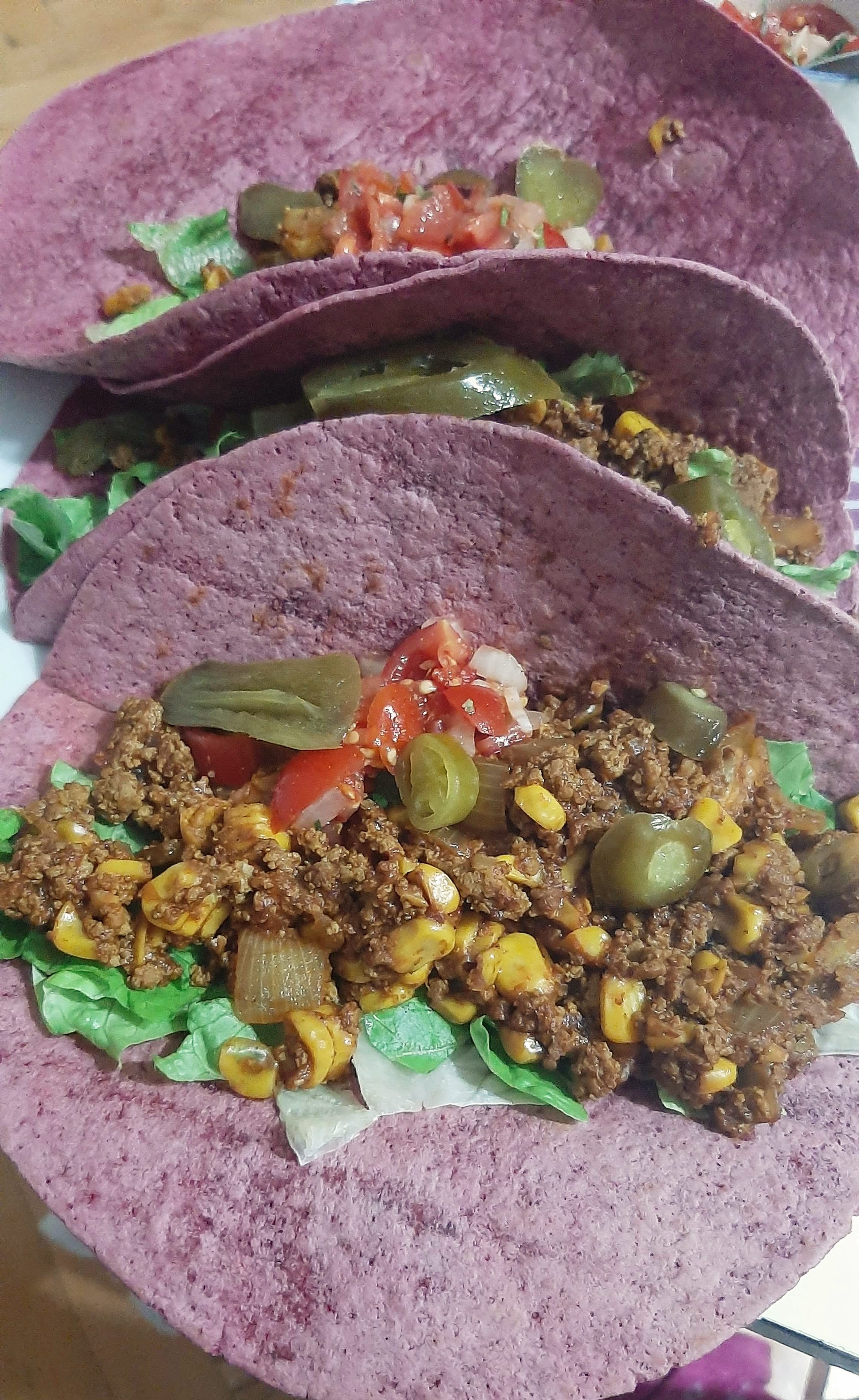 So here we are an an unintended vegan taco night with beetroot tortilla shells. Are you excited or wary? Because me? I was both.