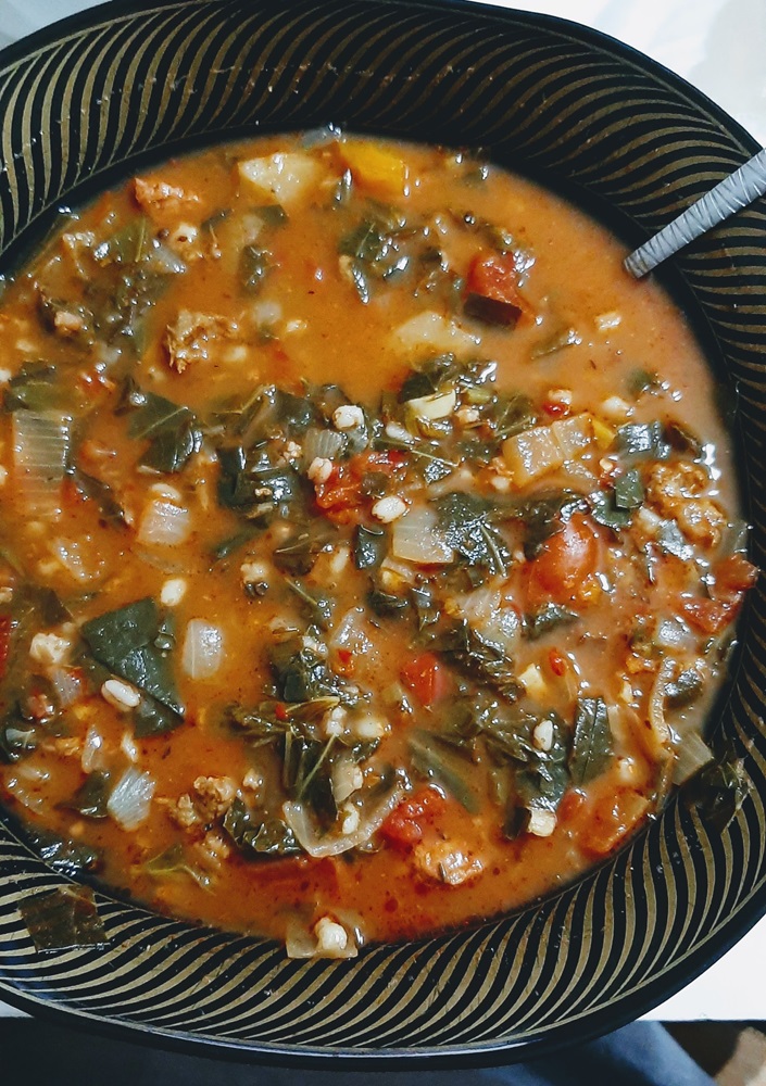 *Serve with bread or barley, or any other grain you prefer. I used bread for lunch and barely for dinner just to switch it up a bit.