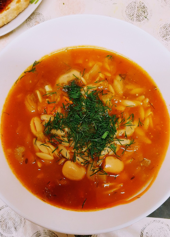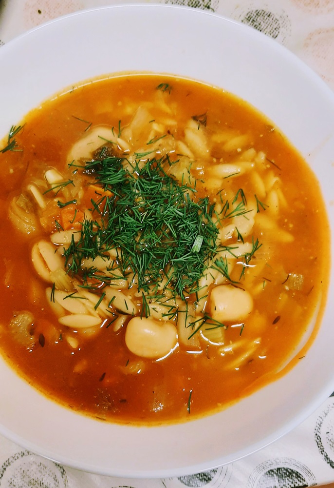 *Add in beans, tomato paste and half of the fresh dill and lemon zest. (I noticed just now that lemon zest & juice are not on the ingredients list, an oversight on my part. Stir.