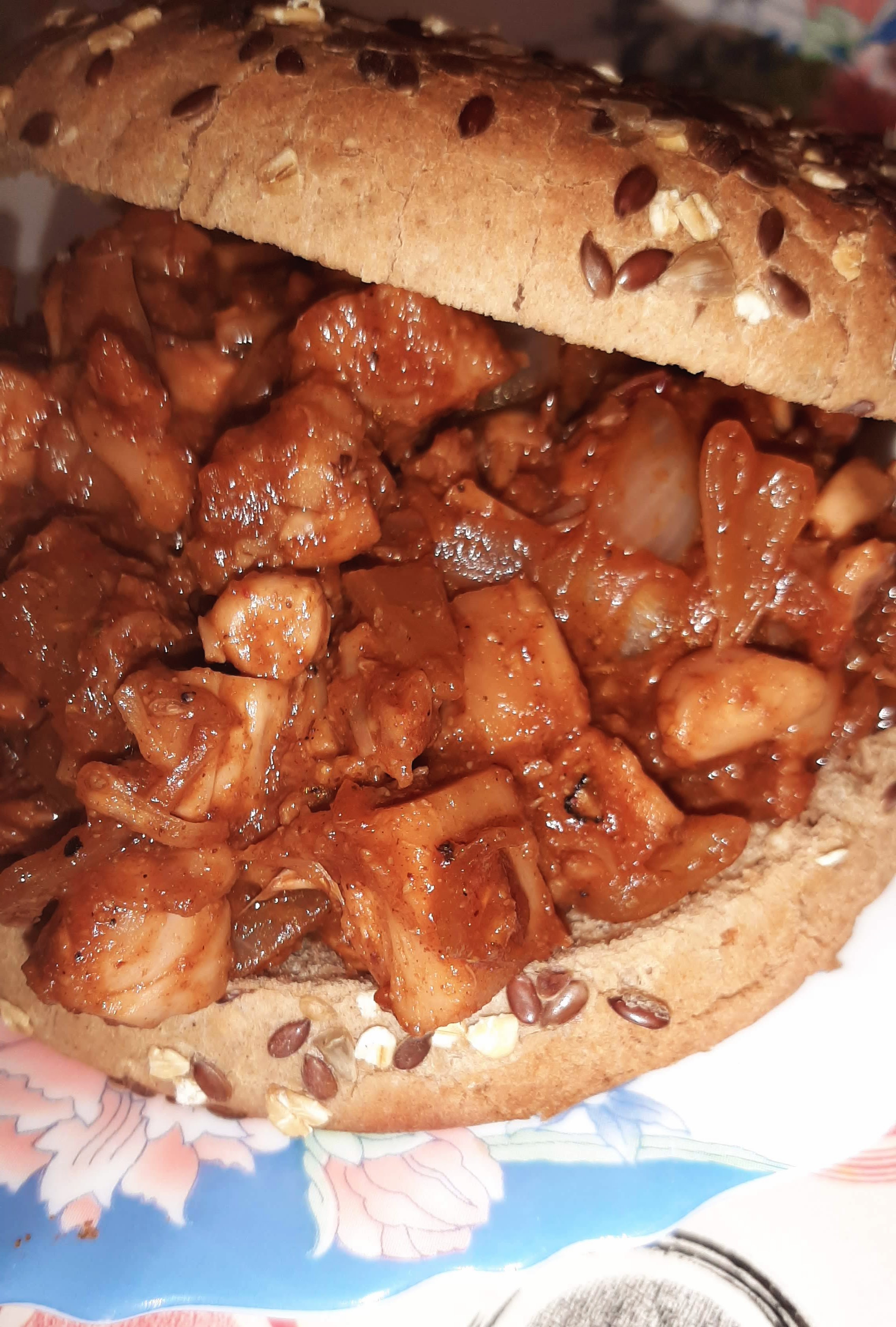 I’ve been experimenting with jackfruit whenever I can find it and after watching a Family Ties clip on YouTube, I was suddenly in the mood for Alex P. Keaton and Sloppy Joes. Since I’m in Romania and Alex is a fictional character, it’s just me and good ol’ Joe.