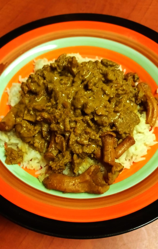 Lidl has recently started carrying some frozen mushrooms. They have porcini, chanterelle and a mixture of wild mushrooms and you know how I feel about mushrooms. He tried out the chanterelle mushrooms first because he loves them but hates cleaning the fresh ones, not that I blame him but they’re so delicious that they’re worth the effort. Anyway, back to the vegan curry. He told me his plan and I was like, “Hmph, okay. Sounds weird but I trust you.” And, as usual, he surprised me and my taste buds.