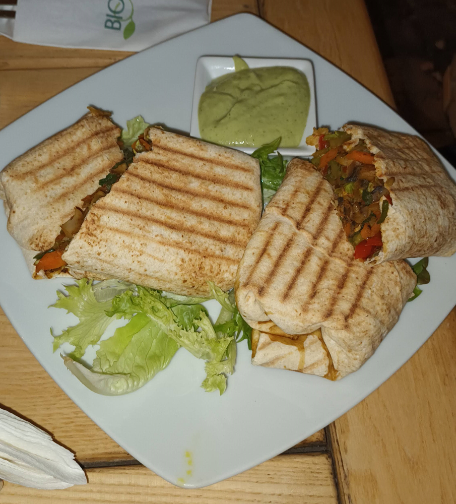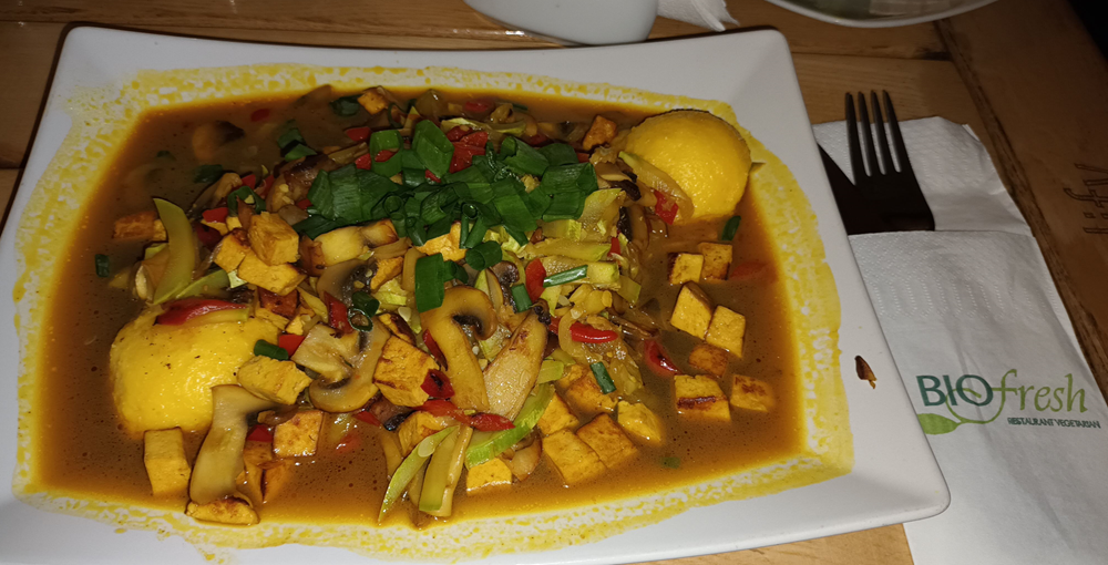 BioFresh labels itself as vegetarian, probably because Romania is a very meat-centric nation and vegetarian meals would receive a much better reception. It was a very nice eatery with both indoor and outdoor seating, great music and friendly staff. Most of all, they had lots of all vegan options. In fact, aside from a few dishes and the entire dessert menu contained honey so we couldn’t enjoy any sweet treats.