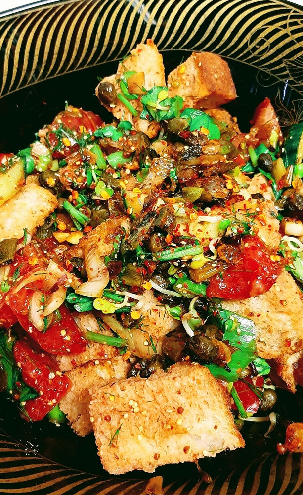 Easy, Hearty & Healthy Vegan Salad – Rustic Bread & Fried Caper Salad