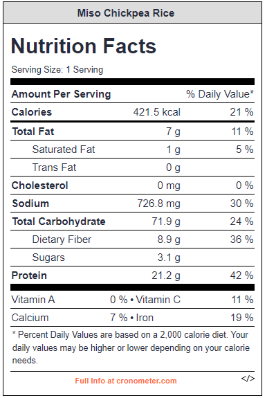 And that’s it, a quick and easy vegan dinner recipe that the people in your household will love and want time and time again. This meal is delicious and easy to make, and you can add curry, sumac, cayenne pepper or even jerk seasoning to give this miso chickpea rice a different taste.