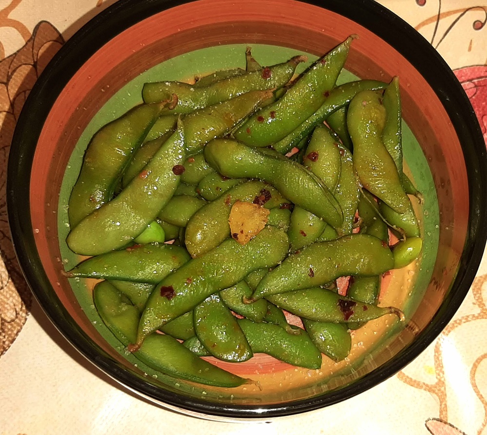 This is a meal on its own but you know I like to have a little bit of greenery with my meals so I steamed up about 200 grams of edamame beans with lemon zest, sea salt and sesame oil.