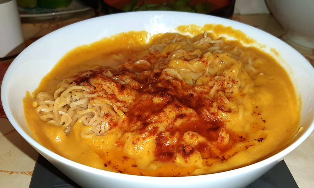But this miso pumpkin ramen recipe is good in cold or warm weather since it’s somewhere between a soup and a sauce.