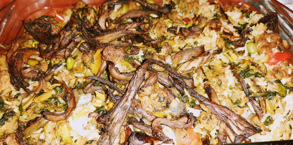 I started with oyster mushrooms because let’s be honest, I can’t get enough of’em! And I knew I wanted to have rice so that’s where i moved to next.