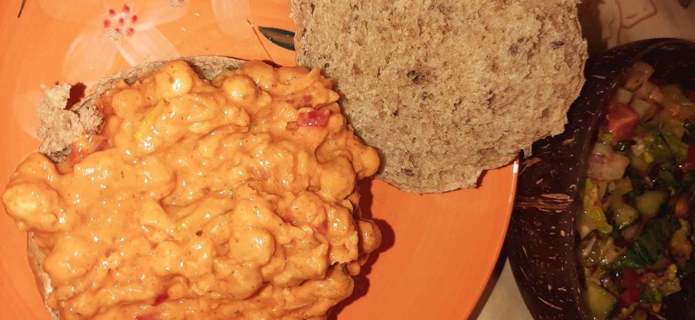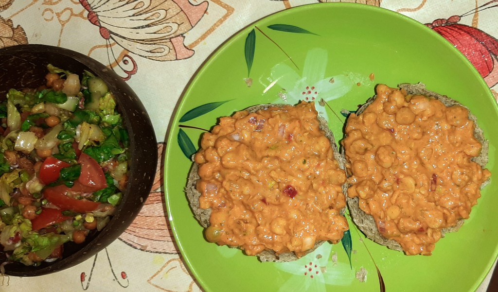 I’ve seen more than a few chickpea salad recipes in my vegan years so I knew that was way to go for these particular buns.