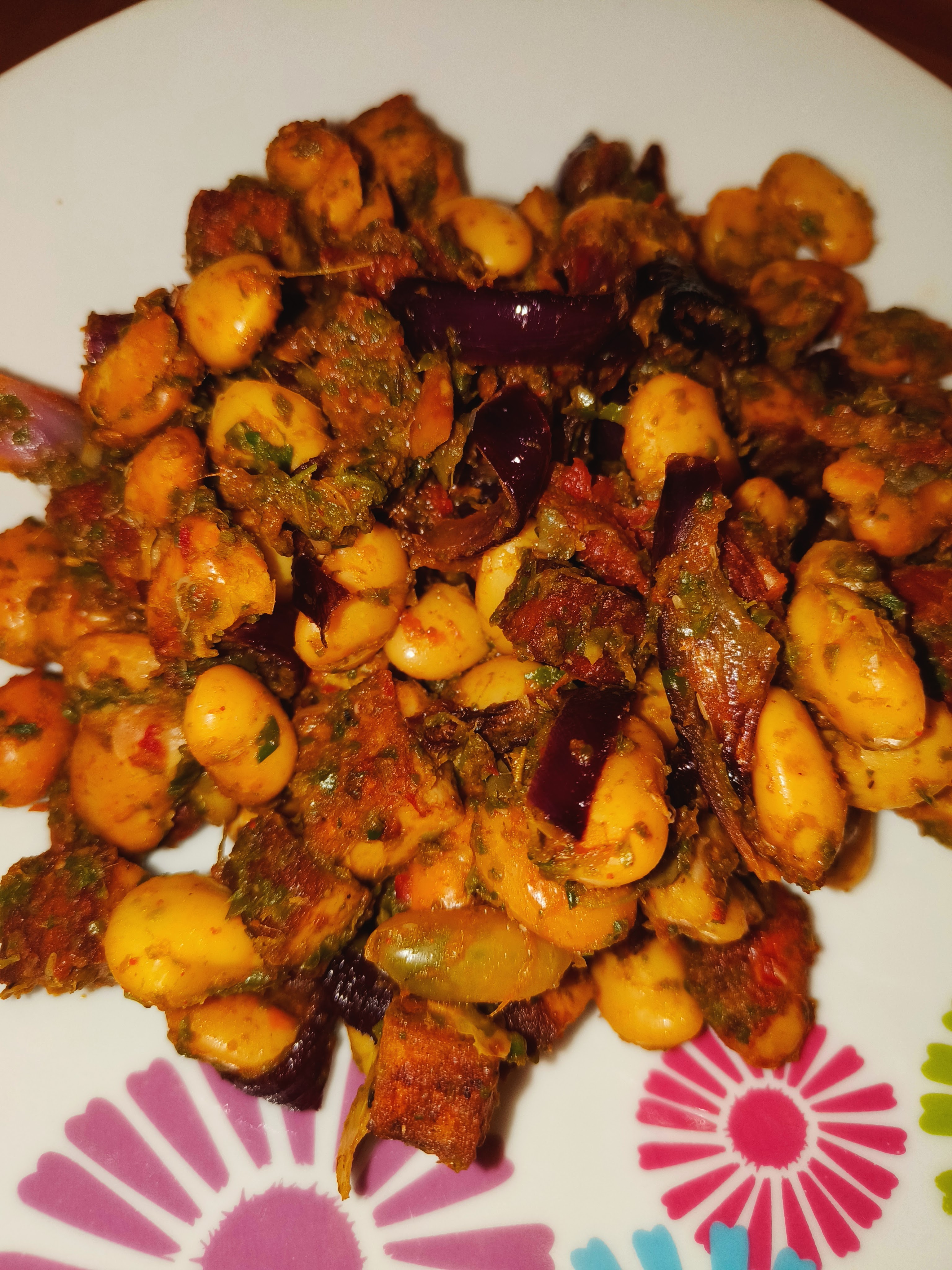 *After 15 minutes, season the butter beans with the same seasoning mix and pop’em in the oven until the onions and tofu are done.
