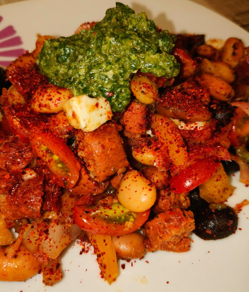 This is a simple recipe that’s completely vegan without trying to be, it’s just herbs…okay and maybe a few other things but not many, I swear!