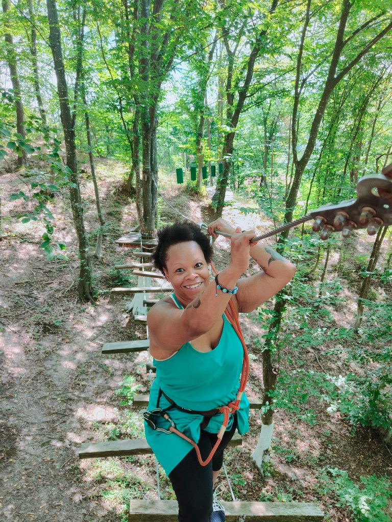 And it was AMAZING!!! I felt so fit and athletic and most of all, capable. It was a real display of the hard work I’ve put in over the past few years to not just lose weight but improve my overall fitness level. The entire course is suspended above the ground, but I had a harness because I ain’t that crazy, but it’s mostly ropes and ladder ropes, ziplines and other insane obstacles I’m sure were created by the same folks who brought us America Ninja Warrior.