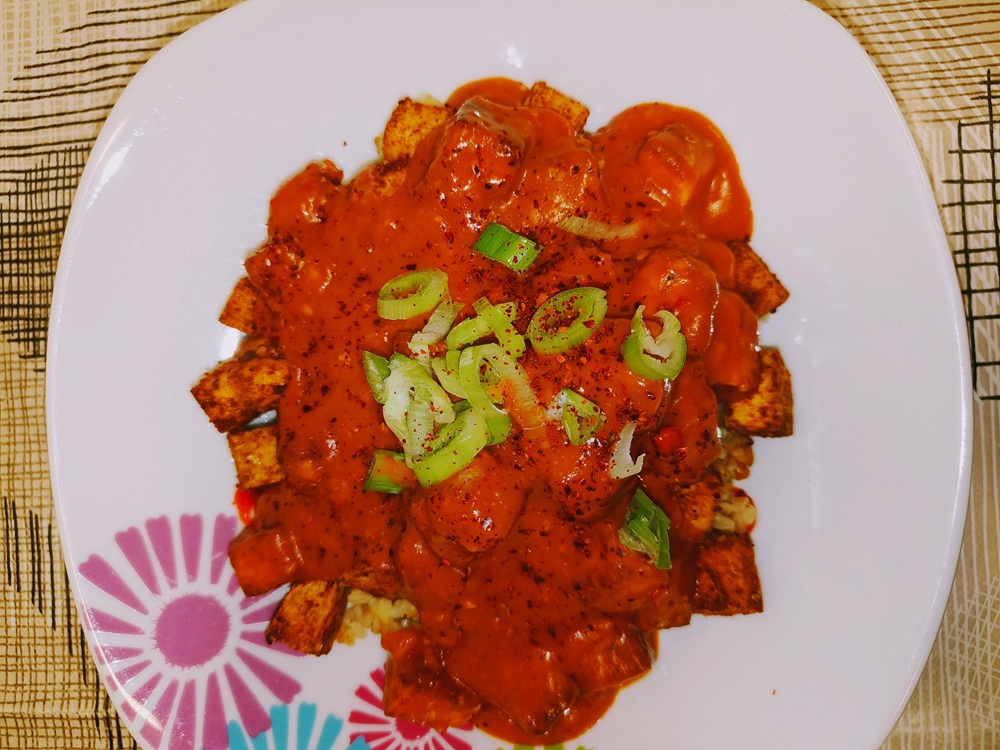 I avoided the temptation to add more ingredients for the sake of science and you know what? It was really easy and pretty damn tasty too. I did not fry the tofu, instead I seasoned it and popped into the oven but you do you.