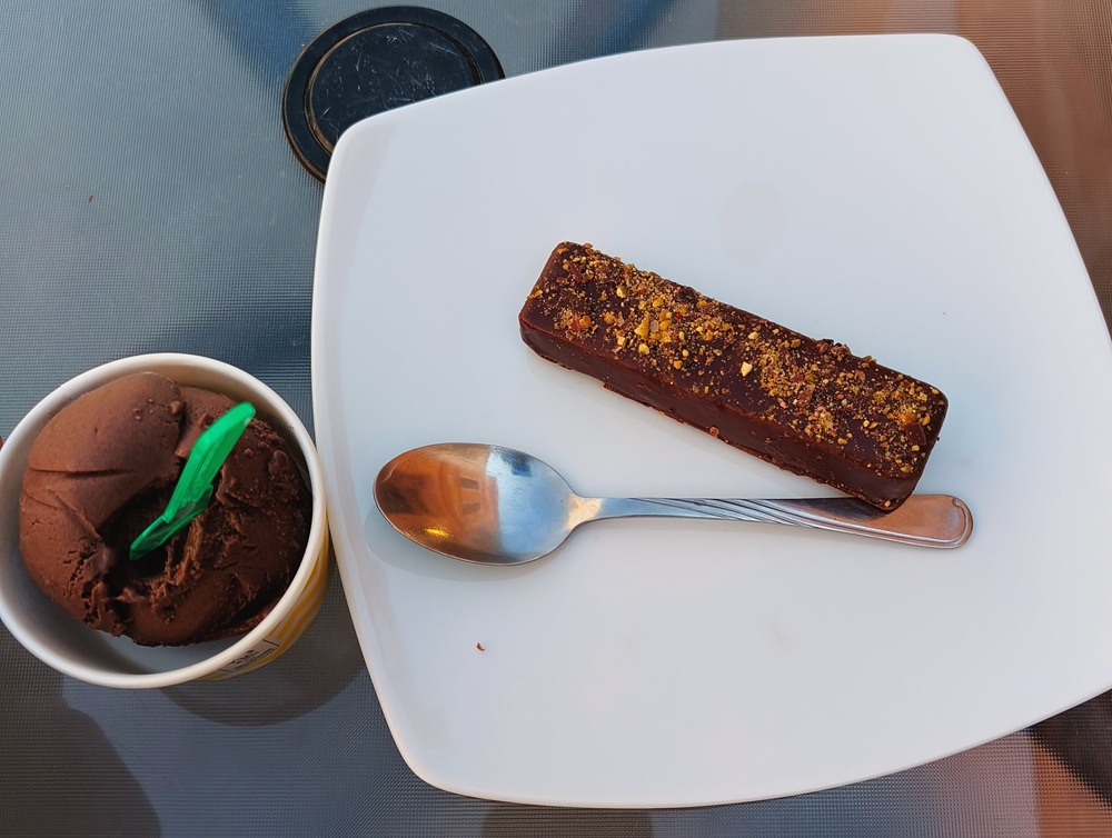 Then, because the whole world seems to be obsessed with Dubai chocolate, we decided to see what all the fuss was about. Honestly, I’m still waiting to see about the fuss. The flavors were good because who doesn’t love pistachio, but I’m not a fan of the crunchy bits since they kind of ended up taking over all the flavor. The chocolate though? On point, creamy and delicious.
