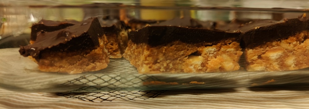 *Melt the chocolate in the same sauce pan you melted the vegan butter in, and add the last of the peanut butter. Stir well.
