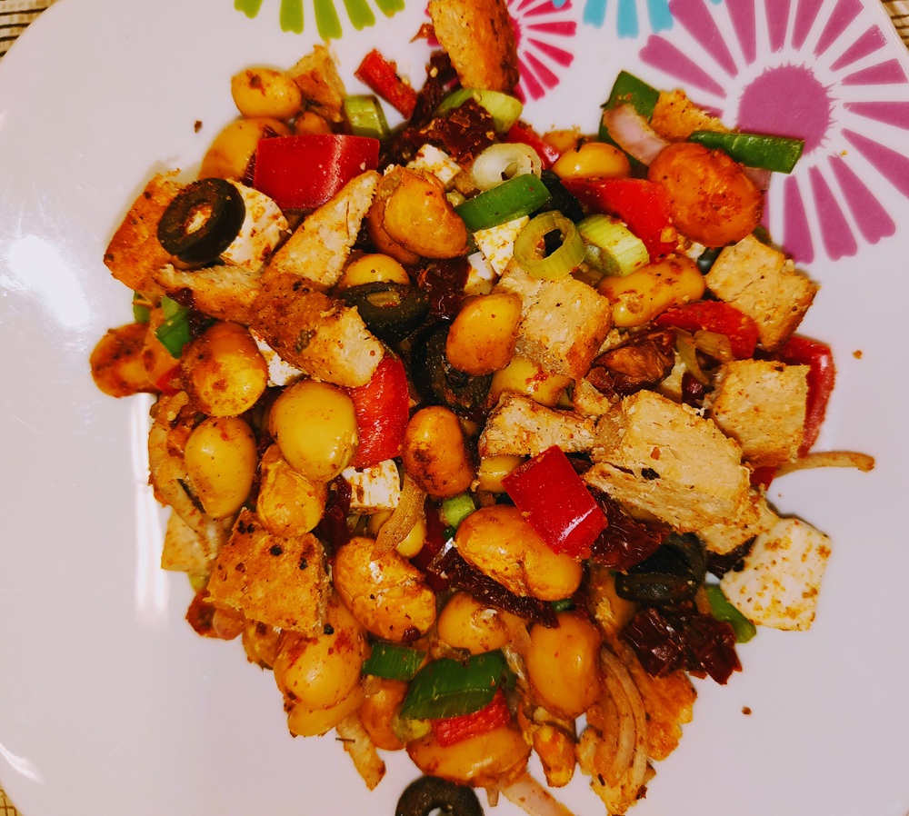 In my food tracker app (Cronometer) I called this recipe Blue Zone Butter Beans because I added ingredients commonly found in that diet such as; sundried tomatoes, olives, tomatoes, cucumber, and vegan feta cheese.