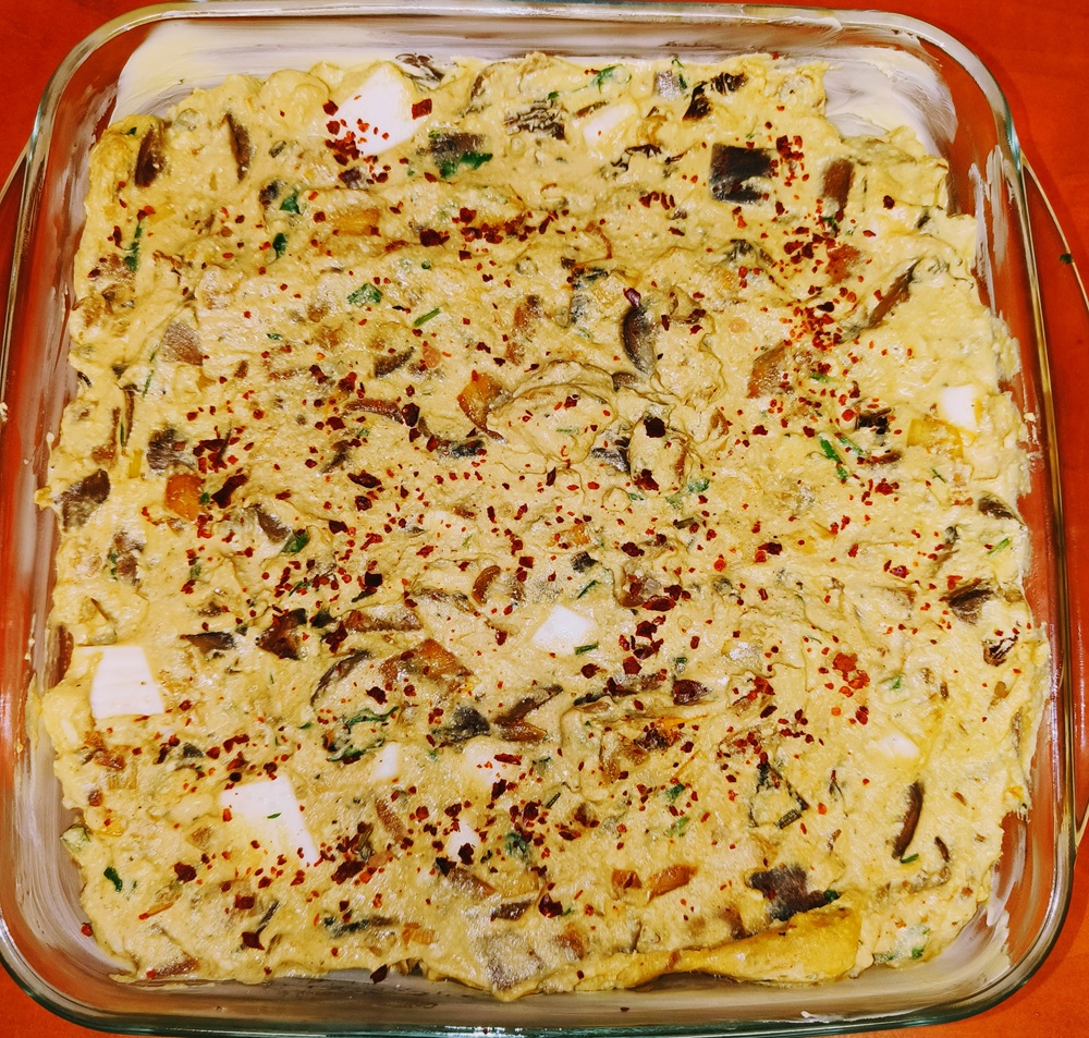 When it comes to making vegan quiche, don’t be shy. If there’s something you like, add it in and see how it goes. I wanted to keep this vegan quiche recipe simple so I added crimini mushrooms, onion, leeks, sundried tomatoes, vegan feta cheese, garlic and of course, nooch.
