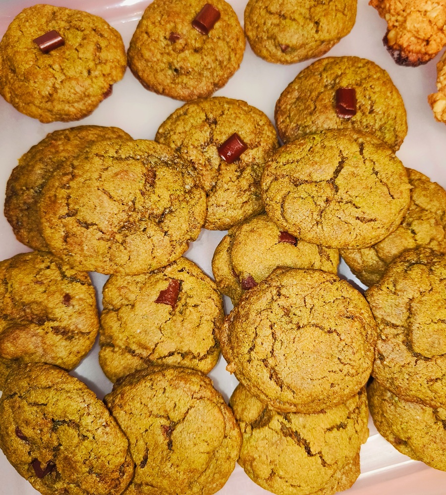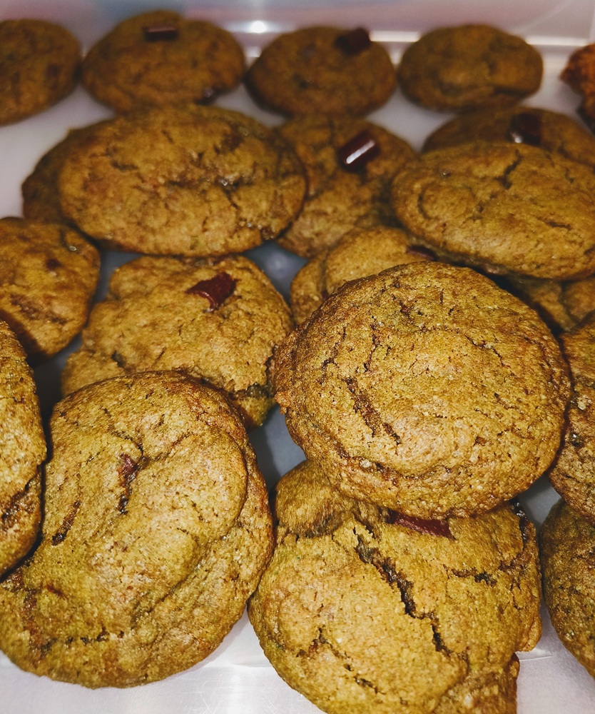The cookies were delicious because I’ve definitely stepped up my cookie game thanks to Rama vegan butter made especially for baking. They were crispy on the edges and soft and moist on the inside. I added dark chocolate chunks in a few of the cookies and holy moly, that took them to the next level!